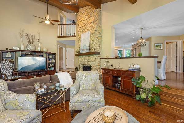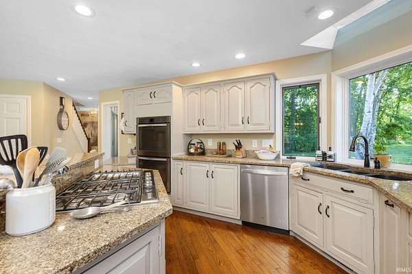 - Alarm System-Sec. Cameras, Alarm System-Security, Bar, Basketball Goal, Breakfast Bar, Built-In Desk, Built-In Gas Grill, Ceiling-9+, Ceiling-Cathedral, Ceilings-Vaulted, Central Vacuum System, Closet(s) Walk-In, Court-Basketball, Deck Open, Detector-Carbon Monoxide, Detector-Smoke, Dishwasher, Disposal, Dryer Hook Up Gas, Eat-In Kitchen, Firepit, Foyer Entry, Garage Door Opener, Generator Ready, Ice Maker, Intercom, Irrigation System, Kitchen Island, Landscaped, Main Floor Laundry, Natural Woodwork, Patio Covered, Patio Open, Pool Equipment, Porch Enclosed, Range/Oven Hook Up Gas, Refrigerator, Skylight(s), Stand Up Shower, Tub and Separate Shower, Tub/Shower Combination, Water Filtration System, Water Heater Gas, Water Softener-Owned, Wet Bar, Window Treatment-Blinds, Window Treatments