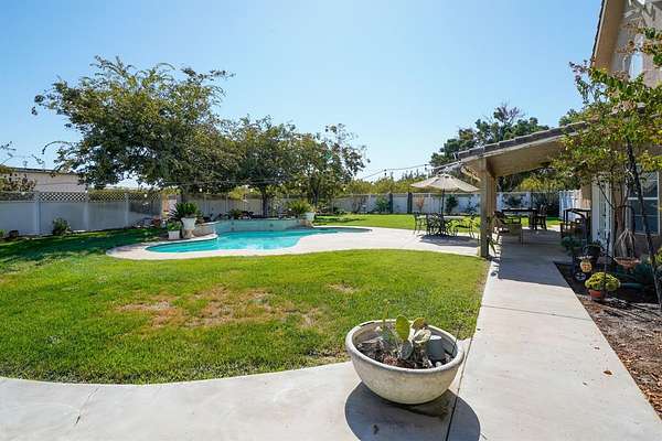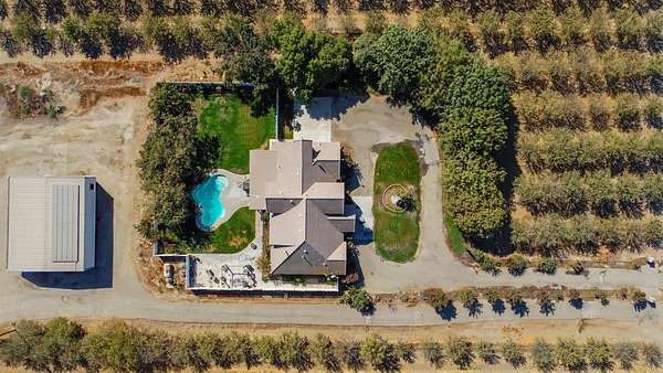 Beautiful, income producing Estate that truly has it all. This 19.7 acre property offers a custom home with over 2800 square feet, another home with 2 bedrooms and 1 bathroom, a 40X50 foot shop with roll up doors, owned solar, gunite pool, and a 17.5 acre Independence Almond Orchard, planted roughly 10 years ago. It is an entertainer's dream. As you enter the custom home, you'll find the formal dining room on your right and sitting area or formal living area to your left. Looking up is the oversized staircase leading to the loft, 3 well sized bedrooms, and full bathroom. Back downstairs you'll see the 1/2 bath/powder room on your left and spacious family room next to the oversized kitchen and breakfast nook or eating space. The primary suite is adjacent to the family room with huge closets, soaking tub, and separate shower. On the other side of the kitchen is the laundry room leading to the garage. Plenty of natural light throughout and overlooking the gorgeous backyard with pool, patio, and bbq area. The shop is located behind the pool. 2nd home is on the opposite side of the shop. Property has 1 ag well and 1 domestic well. Also, located in Laguna Water district. There are so many possibilities with this incredible estate. Call your Realtor for your private showing!