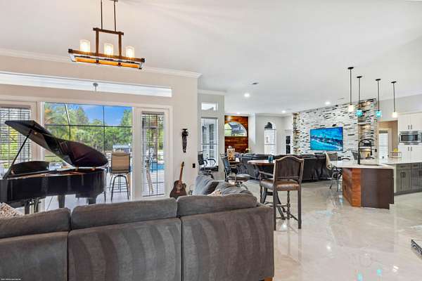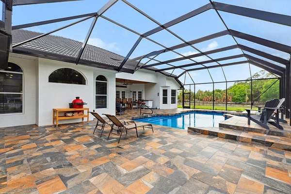 Reduced $350K,! Priced under appraised value, seller relocating. Remodeled 5Br home on 5 cleared acres, perfect for the active family or equestrians. The center-island kitchen features quartz counters & stainless appliances & opens to the family room w/a marble entertainment wall & fireplace. The primary bedroom suite boasts sitting room & luxurious spa-like bathroom with dual vanities, new spa tub, rain & waterfall shower heads & 6 body sprays. Upstairs is a private junior suite with full bath and balcony. The new pool & patio is finished in a stunning slate tile & is completely screened. There is a new RV Pad w/electric & 500 gallon septic hookup. The lot offers plenty room to layout your equestrian facilities. Hack across the street to White Fences equestrian subdivision & horse shows.