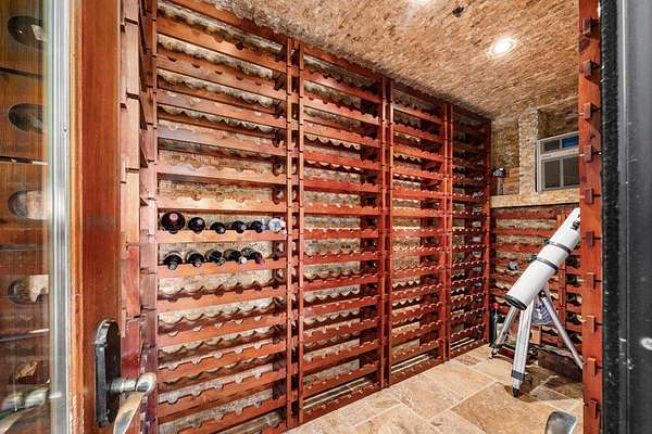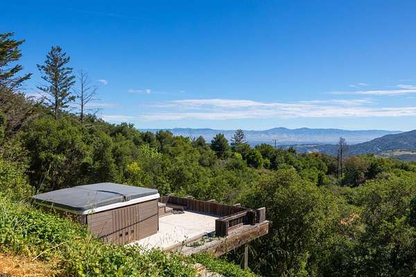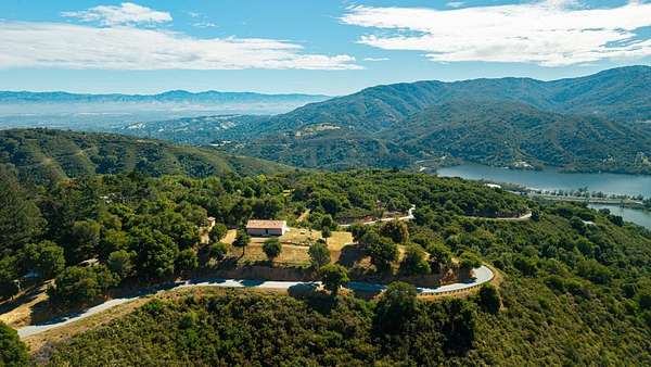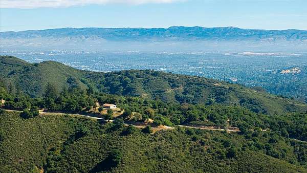 Perched above Montevina Road in the Los Gatos Mountains, this 15-acre gated estate offers privacy, scale, and panoramic views of the Bay Area, Lexington Reservoir, and Lyndon Canyon, just minutes from downtown Los Gatos. A paved road leads to a gated entrance, creating a private mountain retreat with dramatic sunrises and sunsets. The property includes an approximately 3 acre fenced area suitable for vineyard use, along with an additional 3 acres across the road offering potential for a second residence or expanded vineyard acreage. A high producing well is complemented by two 10,000 gallon storage tanks and an on site fire hydrant. The home features stone mosaic wall cladding, knotty pine cabinetry, solid core doors, hardwood floors, and a temperature controlled wine cellar finished in stone. The kitchen offers a stone island with seating, a chef quality six burner Jade range, and a Thermador oven. Two versatile outbuildings provide laundry and storage. Located within the Los Gatos School District, this is a rare opportunity to own a private, view-driven estate with close proximity to town!