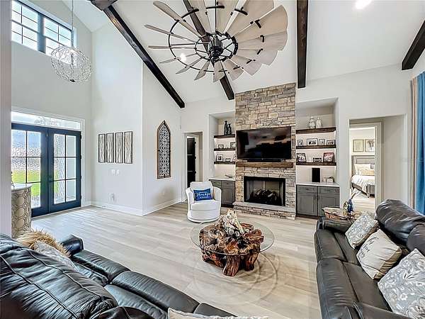 This exceptional Custom-Built estate blends refined luxury with private, acreage living. Set on five acres with a water view within an exclusive gated community, the residence offers direct access to the Clermont Chain of lakes -- an ideal setting for boating, sunsets, and serene outdoor living.