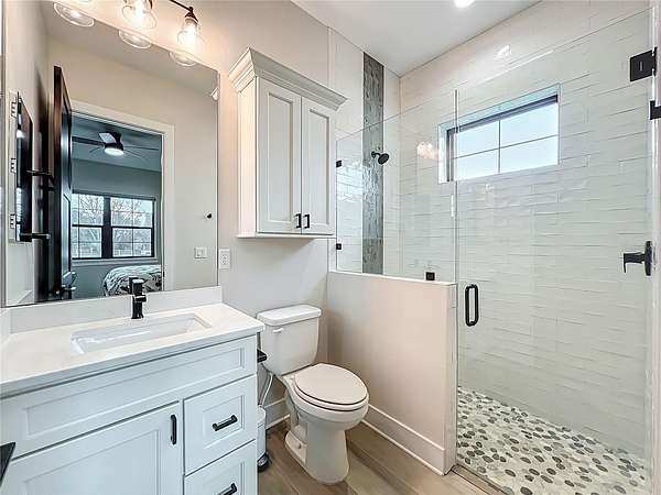 - Cathedral Ceiling(s), Ceiling Fans(s), Eat-In Kitchen, High Ceilings, Open Floorplan, Primary Bedroom Main Floor, Split Bedroom, Stone Counters, Vaulted Ceiling(s), Walk-In Closet(s)