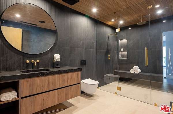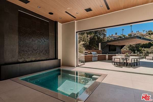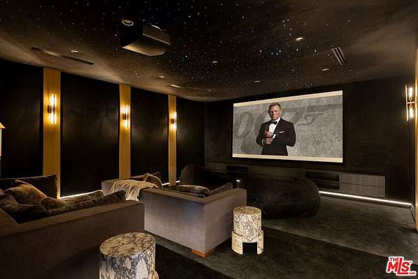 A Contemporary Sanctuary in TarzanaOverlooking the manicured fairways of a private golf course, this fully reimagined contemporary residence in Tarzana blends architectural scale, indoor luxury, and sweeping greenbelt views.Soaring ceilings and expansive walls of glass define the main living space, drawing in natural light and framing the landscape beyond. Automated sliding doors open effortlessly to a broad deck above the course, creating a seamless indoor-outdoor connection where the views become part of everyday living.At the heart of the home is a dramatic indoor pool a rare architectural centerpiece that sets this property apart. Reflective water, clean lines, and ambient lighting create a visually striking yet tranquil environment. An adjoining lounge and bar elevate the experience, offering a refined and private entertainment setting.The residence also features a dedicated home theater with a dramatic ceiling detail that recreates the ambiance of a night sky, delivering a true cinematic experience. A private gym provides convenience within a thoughtfully integrated space.Upstairs, the primary suite captures serene golf course vistas, offering a peaceful retreat above it all.Defined by openness, light, and exceptional amenities, this Tarzana residence delivers contemporary living with uninterrupted golf course views at its forefront.