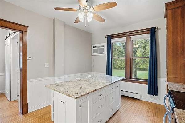 Charming two-story home on a scenic 6-acre setting with thoughtful updates throughout. Ideal for a hobby farm, the property offers fenced pasture, gardens, a creek, wooded areas, an 80x22 shop/barn, and a chicken coop or small storage shed. Inside, you'll find original hardwood floors, detailed woodwork, and a spacious kitchen with a center island, granite countertops, stainless steel appliances, and custom built-ins. The main floor includes a large family room, an adjoining office or den, a generous dining area with a built-in buffet, a three-season porch, and a laundry room with a sink and extra storage. Upstairs are three large bedrooms, each with a walk-in closet. The lower level offers a family room with a tile and marble bath and a walk-in closet--flexible for use as a bedroom or guest suite. Another lower-level space could serve as a den or a potential fourth bedroom with the addition of an egress window.
