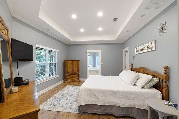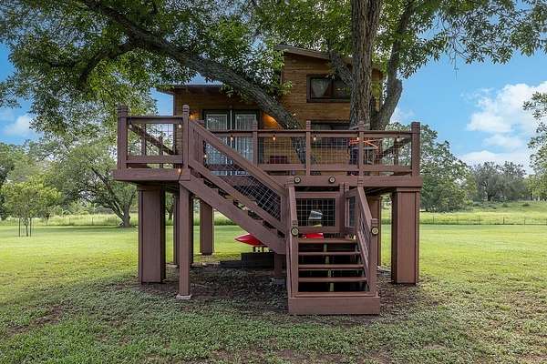 Welcome to 194 2 Mile Ln?where luxury meets laid-back living on 1.7 acres just 3 miles from downtown Smithville. This 3BD/2BA home features a chef?s kitchen with KitchenAid Caf? appliances, double oven, 5-burner cooktop, custom cabinetry, and an oversized butler?s pantry. Wood-look tile throughout?no carpet. The primary suite offers a spa-like bath with dual vanities, soaking tub, and large custom-tiled shower. Enjoy both an attached garage and a 576 sq ft detached garage finished as a pool house with stained concrete floors, full kitchen/bar, full bath, and covered porch. Relax in the 13,500-gal freeform pool or escape to the elevated 252 sq ft 1BD/1BA ?tree house? with private deck and garden views. Peaceful, private, and just 35 mi to Austin airport and 12 mi to Bastrop?this is Central Texas living at its best!