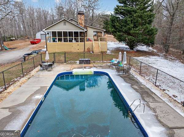 Welcome to your private oasis on 2.93 acres, where tranquility and space meet modern living! This charming 1,680 sqft home features three spacious bedrooms and two bathrooms, offering comfort and versatility for family living or entertaining guests. Step inside to discover an inviting open-concept layout that seamlessly blends the living, dining, and kitchen areas, perfect for gatherings and family time. In the living room enjoy cozy evenings by the fireplace. The kitchen has an eat in bar for the quick family meals/ or after school homework. Enjoy the convenience of a two-car garage and plenty of additional parking along the long driveway. The outdoor paradise awaits with a stunning inground pool, ideal for summer days spent relaxing or hosting barbecues. Surrounding the pool, you'll find beautifully landscaped grounds adorned with mature trees, providing privacy and a serene atmosphere. Explore your hobbies in the expansive barn and workshop, both offering ample storage and workspace for projects or equipment. If you have furry animal friends, there's no need to worry-there's a fenced area just for them! With 2 inviting decks, you can soak in the peaceful views from different vantage points, whether enjoying morning coffee or winding down in the evening. Tucked away at the end of a dead-end road, this property combines privacy with the beauty of nature, making it a rare gem. Don't miss the opportunity to own this slice of paradise! Schedule a viewing today and envision your life in this beautiful home.