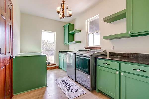 - Central Vacuum, Chandelier, Decorative Lighting, Granite Counters, Kitchen Island, Multiple Staircases, Natural Woodwork, Pantry, Second Primary Bedroom, Walk-In Closet(s)