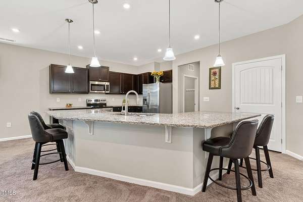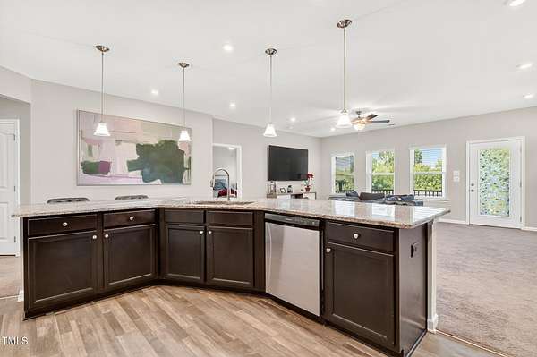 - Ceiling Fan(s), Granite Counters, Kitchen Island, Living/Dining Room Combination, Open Floorplan, Pantry, Primary Downstairs, Smooth Ceilings, Walk-In Closet(s), Walk-In Shower