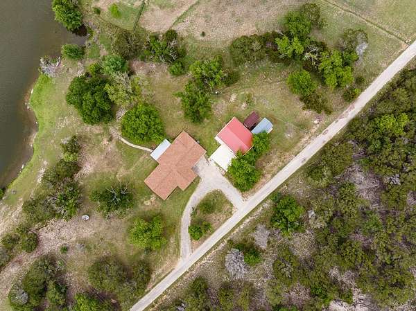 Experience the endless potential of this stunning lakefront property set on over 16 acres just outside the city limits. This 3-bedroom, 2-bath home spans approximately 1,516 sq. ft., flooded with natural light and ready for your personal touch. The covered porch is an ideal spot to unwind with a cocktail while taking in serene lake views and refreshing breezes. Enjoy fishing, kayaking, family BBQs, and more right from your backyard. A recently built, spacious 3-bay workshop provides ample space for projects, storage, or hobbies. Across the road, a prime building site atop the hill boasts breathtaking vistas - a perfect location for your dream home. The property also includes a two-car garage with a workshop area, RV cover, and storage building, all of which convey. A must-see opportunity!