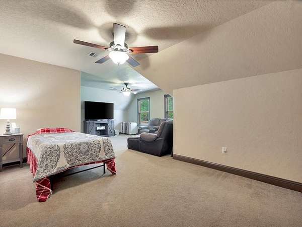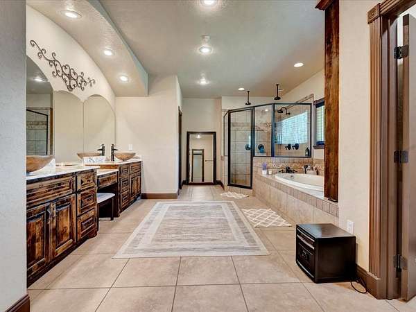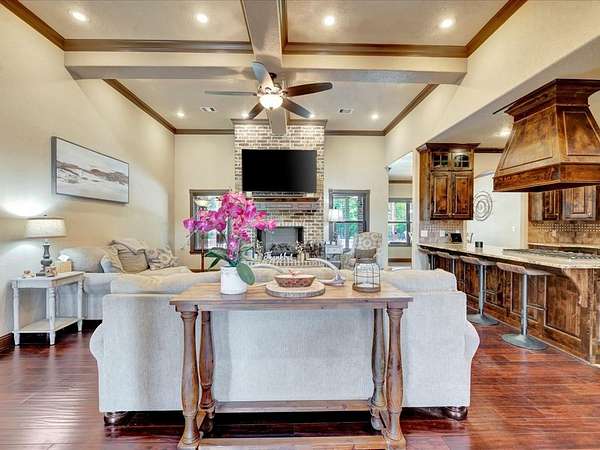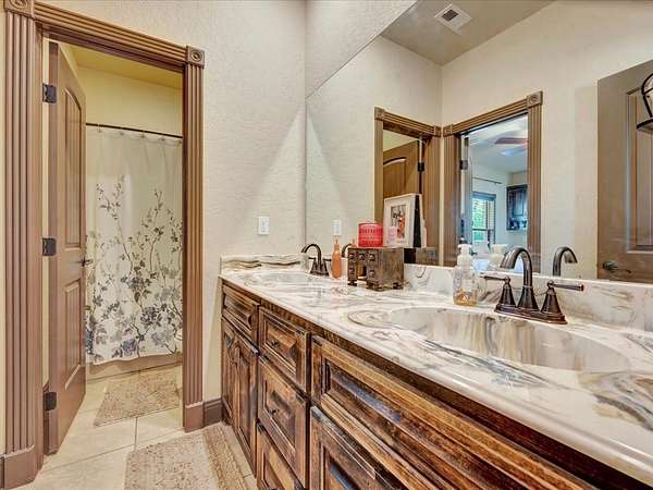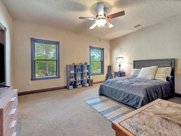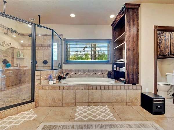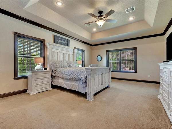- Boxed Ceiling, Breakfast Bar, Cable TV, Ceiling Fan(s), Desk, Gas Fireplace, Jetted Tub, Lower Level Master, Miniblinds, Pantry, Raised Ceiling