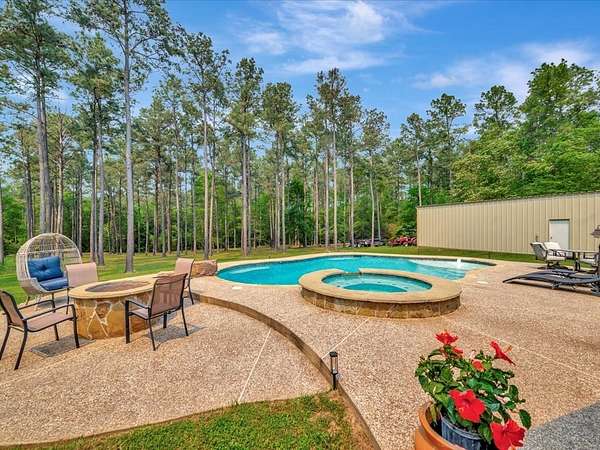 Est $4,329/moWESTWOOD BEND SUBDV! HUDSON ISD! Stunning 4 bed, 3.5 bath home on 3.23 acres! The kitchen features granite countertops, pantry, stainless steel appliances, and double ovens--perfect for entertaining. An office nook adds convenience for remote work or study. The luxurious primary suite boasts a grand bathroom with dual sinks, a large walk-in shower, and a separate soaking tub. Step outside to your private oasis with a heated pool, spa, fireplace, and firepit--all set against a serene wooded backdrop. A 1,200 sq ft workshop completes this dream property! So much to love about this property!!