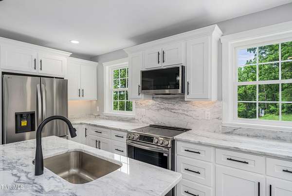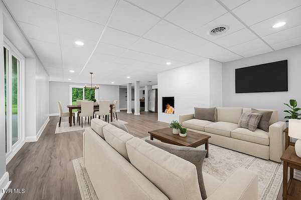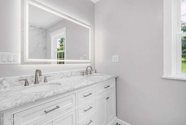 Experience the perfect blend of timeless Southern charm and modern comfort in this beautifully updated home on nearly 5 acres. Centrally located just 15 minutes from everything Johnson City has to offer - dining, hospitals, shopping, and more - this property offers both convenience and serenity. Inside, you'll find elegant details throughout, including built-in shelving, a statement fireplace, and an open-concept layout. The kitchen is a chef's dream with GE appliances, custom cabinetry, and granite countertops, flowing into a spacious dining area ideal for entertaining. The main-level primary suite features a spa-inspired en suite with a marble walk-in shower and double vanity. Two additional bedrooms, a full bath, office, sunroom, and laundry round out the main floor. The finished basement offers a second full kitchen, living area, full bath, laundry, and three versatile bonus rooms - perfect for guests, in-laws, or a home business. The upper level is framed and plumbed for up to five more bedrooms and a full bath, offering endless possibilities. With high-end finishes, generous space, and a prime location, this home is a rare find in East Tennessee. Buyer or Buyer's agent to verify all information