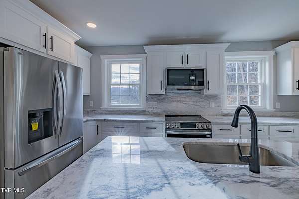 Immaculate three-story home in the heart of Johnson City, offering over 4,000 square feet of beautifully upgraded living space on 4.85 acres. This thoughtfully updated residence features two full kitchens, two laundry areas, steel support beams, and a flexible layout that includes space ideal for an in-law suite or multi-generational living. High-end finishes shine throughout, including granite countertops, modern design elements, and a luxurious primary suite with a marble walk-in shower and double vanity. Conveniently located within 15 minutes of ETSU, Milligan College, premier trout streams, shopping, dining, and major medical facilities. IT IS THE SOLE RESPONSIBILITY OF BUYER AND BUYER AGENT TO VERIFY ALL INFORMATION CONTAINED HEREIN