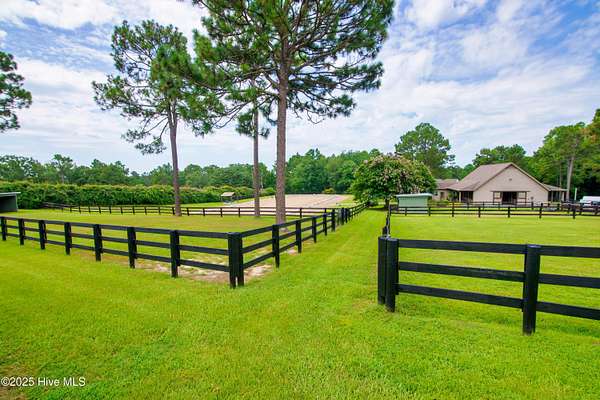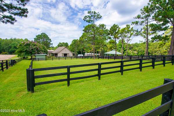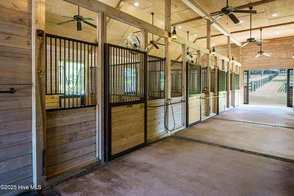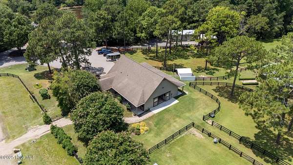 Welcome to Devonshire Farm, an exceptional 24-acre equestrian estate offering a perfect blend of luxury, function, and thoughtful updates throughout. This 5BR/4.5BA, 4,786 sq ft custom home is nestled among rolling pastures and woods with direct access to the Walthour-Moss Foundation. Built in 1995 and extensively renovated between 2005-2020, the property features 12 acres of fenced pasture, a scenic pond, and professionally landscaped grounds with hardscaping, a saltwater pool, and Trek-decked docks. Equestrian amenities include a 6-stall barn (12x14 ft stalls) with fans, Dutch doors, wash stall, feed/laundry rooms, fly system, and 700 sq ft guest quarters. Enjoy a 100x200 ft fully fenced riding arena with gazebo, a covered 50 ft round pen with GGT footing and lighting, 10 paddocks, 5 run-ins, covered shavings bin, and a walk-up manure bin. A 40x50 insulated workshop with loft and a 20x25 ft equipment pole barn complete the utility offerings. The home's spacious interior is rich with custom upgrades-refinished hardwood floors, high-end kitchen appliances, large island, wine bar, and LED lighting throughout. The open-concept living/dining/kitchen connects seamlessly to a screened porch and multiple patios. The owner's suite offers a spa-like bath, private study, and extensive closet space. Guest suites feature remodeled baths, plantation shutters, built-ins, and barn views. Additional highlights include a game room with full kitchen, updated windows and doors, new roof, gutters, and Starlink. This turnkey horse property has been meticulously maintained and thoughtfully improved for both equestrian performance and everyday enjoyment.