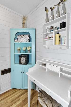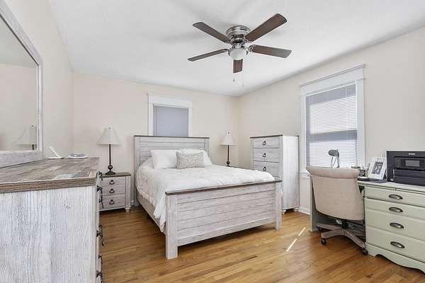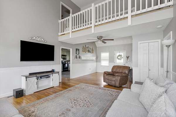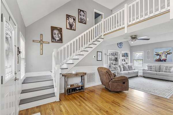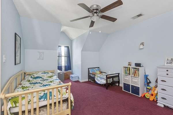 - Bookcases, Ceiling Fan, Ceilings-Cathedral/Raised, Ceilings-Some 9 FT +, Countertops-Solid Surface, Smoke Detector, Walk in Closet
