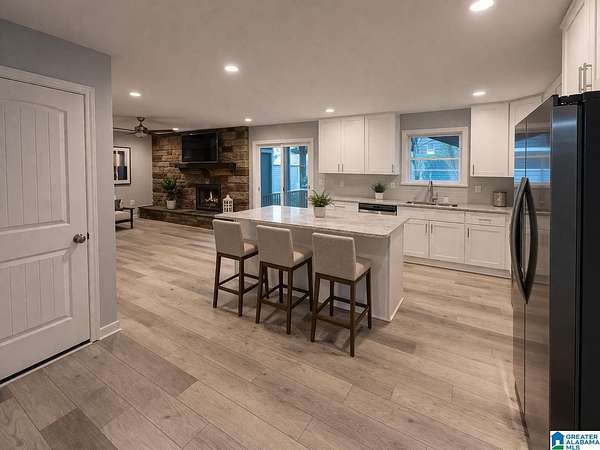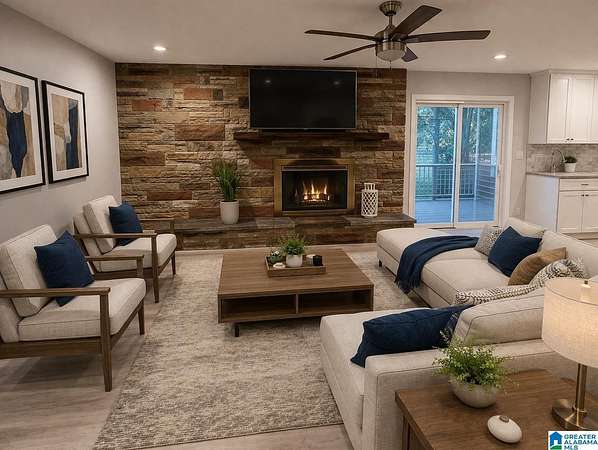 A home with history and fresh new life, this property—rebuilt in 2025—offers the rare blend of character and modern comfort. Resting on 1.5 peaceful acres, the one-level layout with a full basement provides both convenience and abundant space. The basement delivers expansive workspace and storage, ideal for hobbies or organization. Upstairs, the fully rebuilt main level features a stunning kitchen with granite countertops, generous cabinetry, and a welcoming breakfast bar. The open floor plan flows effortlessly from the front door into the living/dining area and into the kitchen/den, where a stone wood-burning fireplace adds warmth and charm. With three bedrooms, two baths, and a large laundry room, the home is designed for comfort. A covered deck creates a cozy retreat overlooking the backyard, while a workshop, storage building, and carport storage area add practicality. Located near excellent schools, shopping, easy I-20 access, this home offers both serenity and convenience.