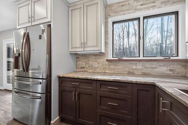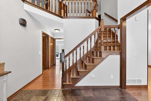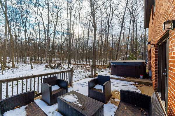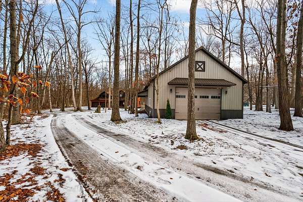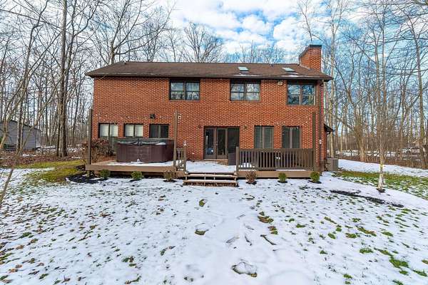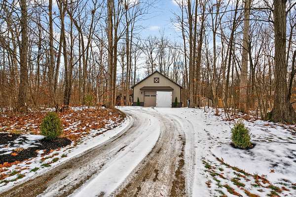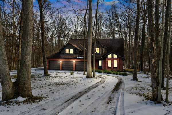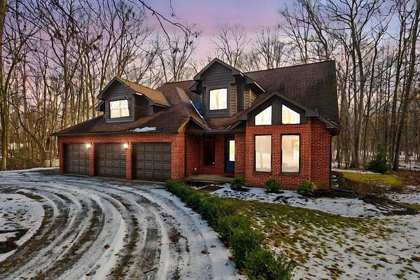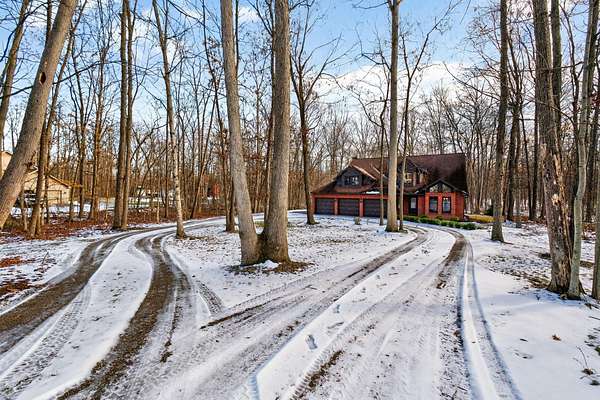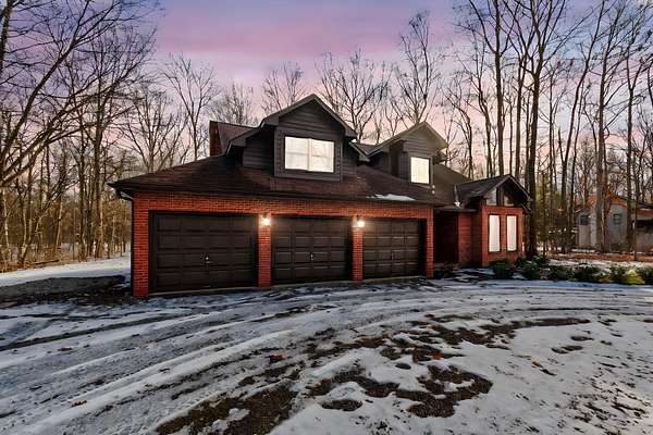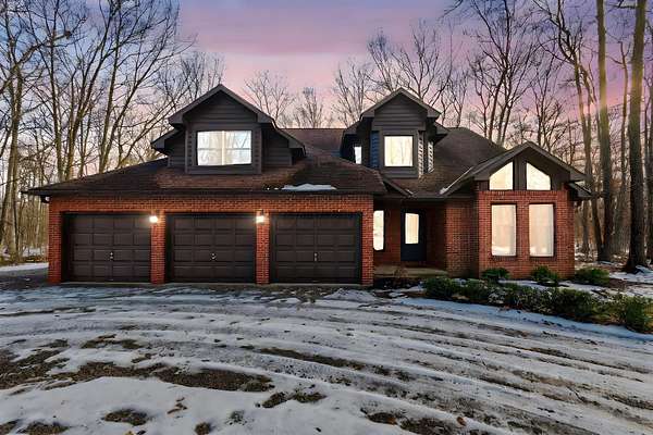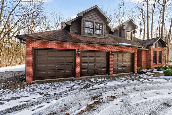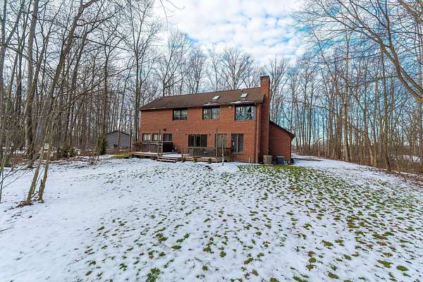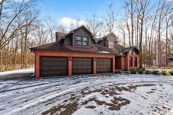 Secluded Country Living at Its Best! Nestled on 5+ heavily wooded acres with a flowing stream, this stunning custom-built brick home offers true privacy. The oner just added a 40 x 30 barn complete with 220 electric, water and drainage. It has a second floor for additional space. This 3-4bedroom includes a loft, 2.5-bath home welcomes you with a dramatic two-story foyer, beautiful wood flooring, custom wood blinds, fresh paint, solid wood six-panel doors, and a cozy wood-burning fireplace. Enjoy outdoor living on the spacious deck overlooking the serene 5.25 acre wooded setting. The updated kitchen is designed for both function and style, featuring granite countertops, stainless steel appliances, an island with breakfast area, abundant cabinet space, built in microwave and a huge pantry. The primary suite is a true retreat with a walk-in closet, dual vanities, private water closet, sauna, and a luxurious oversized two-person shower. Additional highlights include an oversized, extra-deep 3-car attached garage, equipped with a Tesla charger a full basement with a killer bar, workout room and natural lighting. Other features include a whole-house generator, Kinetico RO system and central vacuum . Other major updates include AC, roof, gutters, and skylights. This one-of-a-kind property offers space, privacy, and comfort don't miss your chance to experience it!