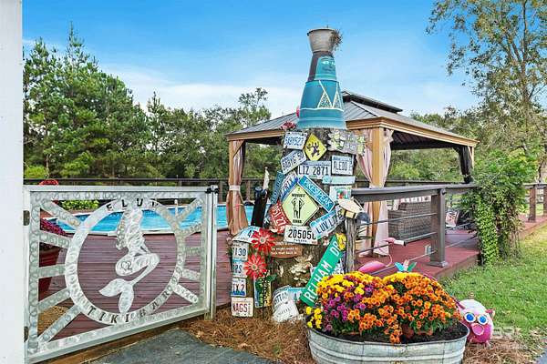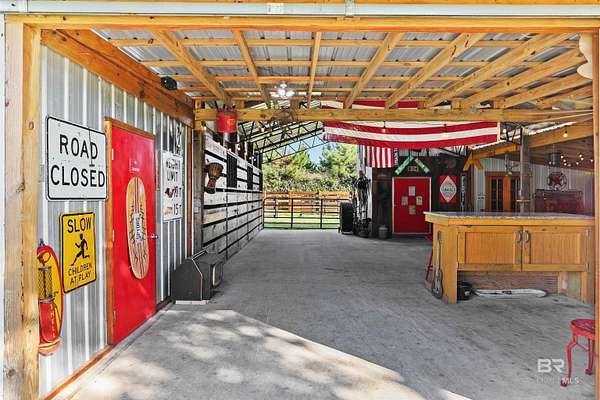Income producing Horse property paradise. Adorable farmhouse located in Baldwin county, Robertsdale, AL. 30 mins to the beach, close to Baldwin Beach Express and I-10. This 1835sq+-ft. home is situated on 3 beautiful acres at the end of a deeded private drive. It features three bedrooms, two bathrooms,living room and den with a spacious kitchen. Newer roof, windows, gutters,appliances and HVAC system with a service contract in place. House completed renovated with new paint, countertops ceiling fans, and lighting. Artesian well water! On Septic with brand new field lines. It's the small details that shine, showcasing this amazing opportunity. On the property you will find a detached garage/work shop. Property also features an income producing cottage, renting for $1250 a month. No lease in place. Cottage opens up to an huge 2000sq ft wooden deck that surround the swimming pool. Enjoy hot days under the Gazebo overlooking your pool. But Wait there is More! Located on the property is a 3 custom stall barn with a tack room, feed room and a cowboy bunk house! This is no ordinary stable area, owner has made it into an entertainment area, with a bar and pool table. Custom professionally built round pen to work your horses. There is also an RV hookup for a camper with water. You will also find a garden shed with storage on property as well. Park your golf cart/ lawnmower. This is country living at its best. This one of a kind property will not last long. Schedule today for a viewing. Buyer to verify all information during due diligence.