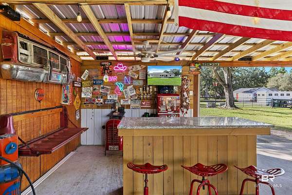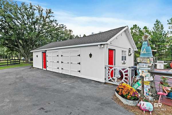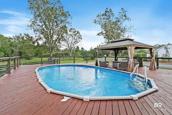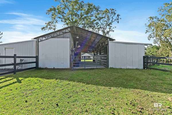 Income producing Horse property paradise. Completely renovated !Adorable farmhouse located in Baldwin county, Robertsdale, AL. 30 mins to the beach, close to Baldwin Beach Express and I-10. This 1835sq+-ft. home is situated on 3 beautiful acres at the end of a deeded private drive. It features three bedrooms, two bathrooms,living room and den with a spacious kitchen. Newer roof, windows, gutters,appliances and HVAC system with a service contract in place. House completed renovated with new paint, countertops ceiling fans, and lighting. Artesian well water! On Septic with brand new field lines. It’s the small details that shine, showcasing this amazing opportunity. On the property you will find a detached garage/work shop. Property also features a mother-in-law cottage. No lease in place.. now renting for $1350 a month. Cottage opens up to an huge 2000sq ft wooden deck that surround the swimming pool. Enjoy hot days under the Gazebo overlooking your pool. But Wait there is More! Located on the property is a 3 custom stall barn with a tack room, feed room and a cowboy bunk house! This is no ordinary stable area, owner has made it into an entertainment area, with a bar and pool table. Custom professionally built round pen to work your horses. There is also an RV hookup for a camper with water. You will also find a garden shed with storage on property as well. Park your golf cart/ lawnmower. This is country living at its best. This one of a kind property will not last long. Schedule today for a viewing. Buyer to verify all information during due diligence.