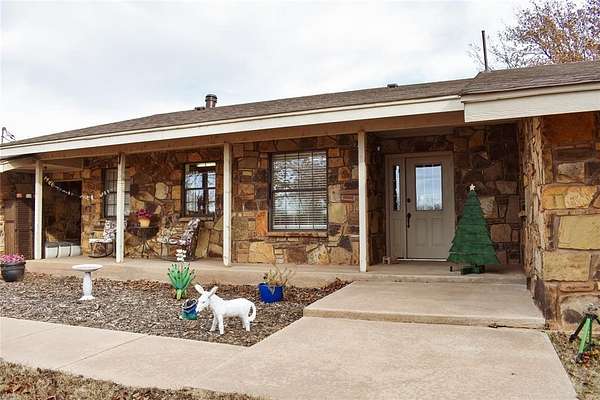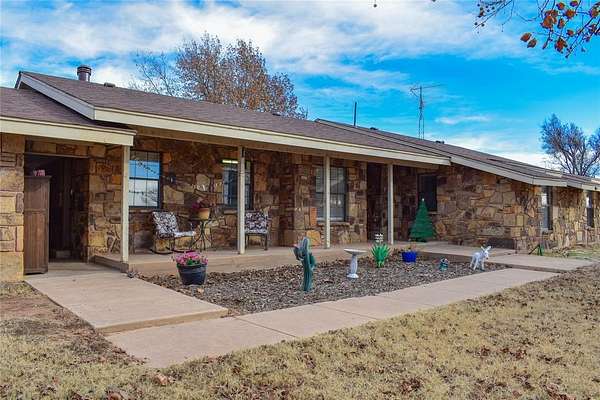 Let's talk about convenience and practicality of this amazing property, ESPECIALLY if you are an animal lover. This beautiful rock home is perfectly situated just outside of city limits on almost 4 acres (mol) but seconds from downtown Mangum! Completely fenced property with not 1 BUT 2 lean to's on the property! With a long, graveled driveway separating the pastures, it is already equipped with a 9'x 13' lean to in the South pasture with water supply close by and a 15' X 48' lean to in the North pasture with a power outlet, lights and a freeze proof hydrant next to it for your convenience. Perfect if you are looking at adding some horses or other farm animals! In addition to the outside is a 50 amp electrical pole hookup in the North field near the fence to park that RV or camper for when it's time to get away on a much-needed vacation. Recently added was a 6ft chain link fence to the backyard, tall enough to keep those mini donkeys or larger breed animals at bay. Enough about the outside amenities, let's talk about the inside. The owners have taken great pride and put ALOT of time and energy into updating the inside, so you don't have to. With fresh paint throughout the entire home, freshly painted cabinets in the kitchen and since ownership, they have painted the guest bath and most of the cabinets throughout to a modern-like feel. Wood blinds throughout, Laminate flooring added in 3 of the rooms and the original hardwood floors in the living room and hallway, this 3-bedroom home with an enclosed sunroom/bonus room just off the living room to be used however you see fit. The home is on public utilities with a Septic tank -Newer appliances to include the fridge, dishwasher and gas stove and 2 water heaters (one for just the bathrooms and one for the kitchen and laundry so you can take those long showers or do laundry and dishes without the fear of running out of water. Call today to see more in person!