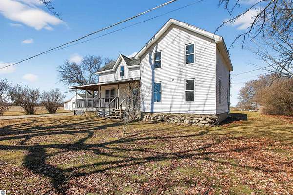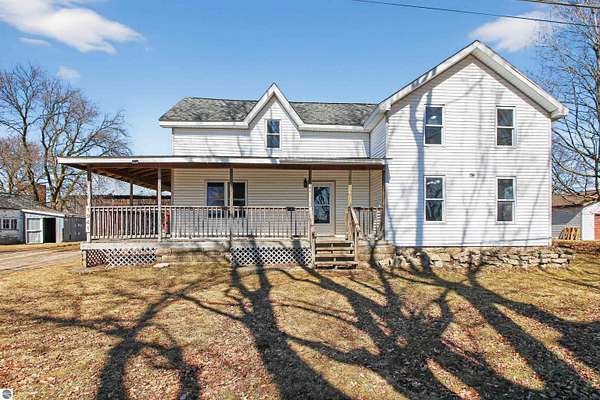 Set on 1.5 acres, this spacious farmhouse offers country living with room to grow. The home features 5 bedrooms, 2 bathrooms, and approximately 2,000 square feet of living space. A welcoming wrap-around porch adds charm and provides the perfect spot to relax and enjoy the peaceful surroundings while sipping on your favorite beverage! Inside, the home offers an open-concept kitchen with a beautiful butcher block island, creating a great space for cooking, gathering, and entertaining. The main living areas feature tray-style ceilings, adding depth and character while giving the spaces a more open feel. Outside, the property offers excellent value-add potential with multiple outbuildings. A large approximately 40 x 80 barn provides substantial space for storage, hobbies, or future use, along with an additional 15 x 20 shed and lean-to. While the outbuildings will need new roofs and exterior, they present a great opportunity for the next owner to add value and customize the property to their needs. Enjoy the benefits of lower township taxes while still being conveniently located close to the amenities and conveniences of the city. This property offers space, character, and opportunity all in one.