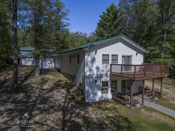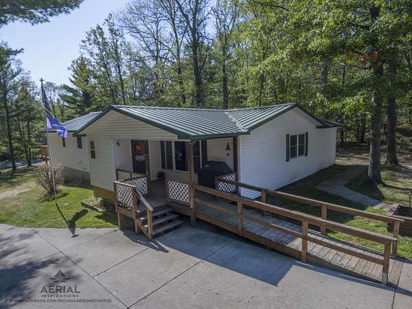 From Roscommon. N on M-18 to Lancewood Dr. Left on Lancewood, and follow to the end (Stop sign). Turn right on Dewitt Trail. Dewitt turns into High Rd. At next stop sign, continue to the left to address on the left.