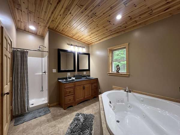 - 1 st Floor Master Bedroom, Ceiling Fan, Curtain Rods, Jet Tub, Vaulted Ceiling(s), Wood Laminate