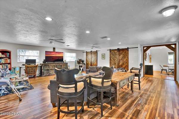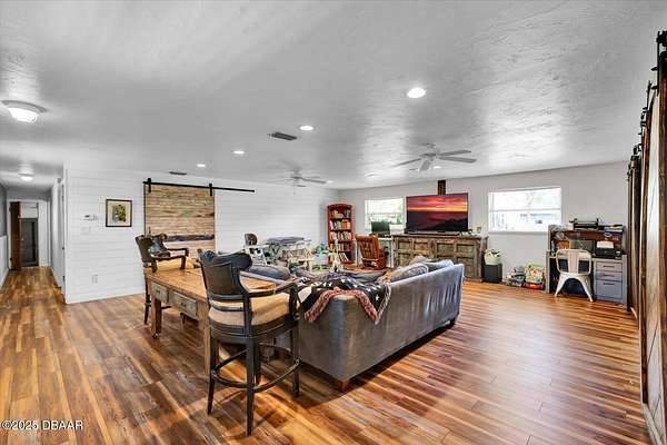 Pre listing appraisal already completed and available upon request. Main home has NEVER had any exterior water intrusion. New ROOF 2025, Both central AC units 2021. Now it's time to escape to the serenity and heart of New Smyrna Beach with this 4 bedroom, 3 bath home with a mother-in-law suite situated on 2.5-acres, perfectly suited for those seeking space, privacy, and the charm of country living-all while being just minutes from the beach, shopping, and dining. Surrounded by majestic oak trees this picturesque property offers endless possibilities for nature lovers, horse enthusiasts, and multi-generational living. The main residence features an inviting, open concept layout with abundant natural light and breathtaking views of the surrounding landscape. The spacious living areas are perfect for entertaining, while the well-equipped kitchen offers modern appliances, ample counter space, and a cozy dining area. Attached to the main home is a mother-in-law suite with a private entranc making it ideal for extended family, guests, or even potential rental income. This fully functional living space includes a kosher kitchen, living area, bedroom, and bath, providing both comfort and independence. Step outside and enjoy the expansive, tree-shaded property, where the possibilities are endless. Large covered porch makes a perfect area to have summer cook outs while overlooking the wide open acreage. Garage and store in the rear of property. For horse lovers, this property is a dream come true, located next to Sandspur Horse Riding Club, providing direct access to riding trails, boarding, and equestrian events. Despite its peaceful, rural feel, this estate is conveniently located just minutes from the vibrant downtown of New Smyrna Beach, with its charming shops, restaurants, and cultural attractions. The pristine beaches of the Atlantic Ocean are just a short drive away, perfect for days spent surfing, fishing, or simply soaking up the sun. Plus, with easy access to I-95 and Daytona Beach, commuting to surrounding areas is a breeze. Call today for a private showing!