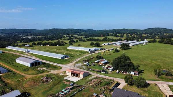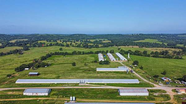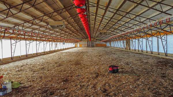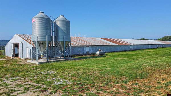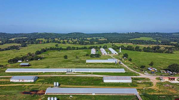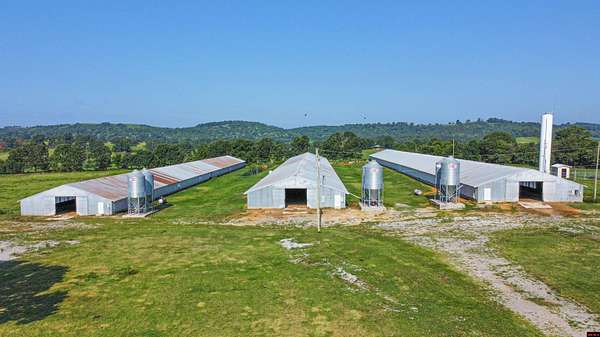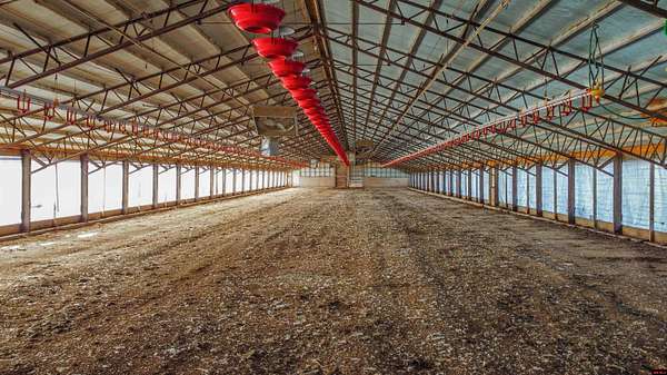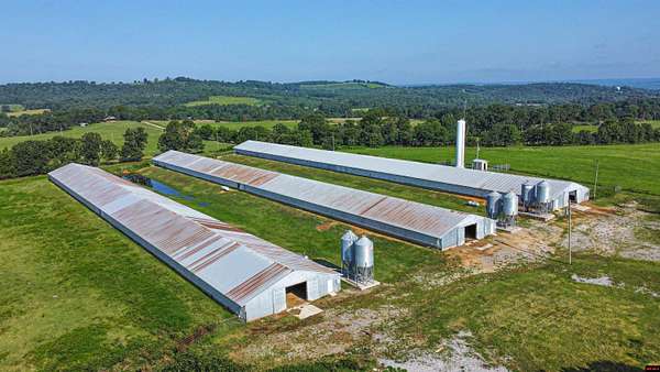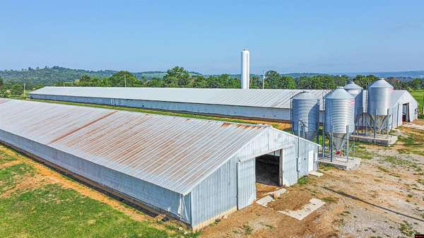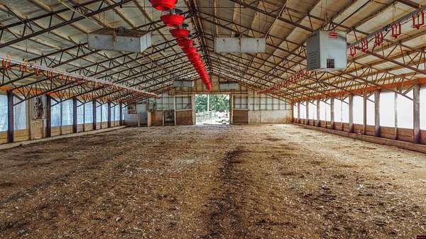 Est $3,266/moMarion county farm previously ran as a turkey farm could be updated to still run turkeys or chickens. Five barns totaling 120,000 sq ft sitting on 30 pasture acres m/l with a pond all fenced and cross fenced. There is one 720 x 50 footing that could have another barn. Workshop with 3 phase power and bathroom along with 5 - 1000 gallon water tanks. Both city water and a well (40 gpm). Houses are heated with propane. Hook ups for a home or trailer as a residence on site. Separate carport for equipment and a large stacking shed for hay or other storage.