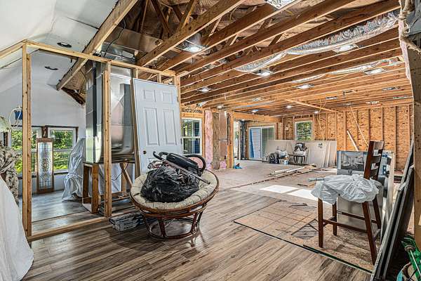 A Fairytale Home Awaiting Its Grand Finale! Once upon a time, nestled on a quiet and serene 1.5-acre corner lot, stood a little cottage type home- strong, little sad, but still beautiful, and full of promise. Not fully finished but now has the heart and bones of a castle with all of its grand additions, just waiting for the right owner to come along & complete the story. Inside, you'll find rooms already kissed by transformation: hardwood floors, sparkling new windows, & walls opened up to let in light and laughter of everyday life. Kitchen has been lovingly updated with SS appliances, farmhouse sink, & marble countertops, ready to host magical feasts and midnight snacks alike. Up the stairs, a dreamy space awaits--an unfinished Primary Suite with soaring ceilings and windows galore, plumbed for your grand Primary Bathroom. A canvas, waiting to become your private retreat in the clouds. Like Cinderella's slipper, it's the perfect fit for someone with vision. Main floor bathroom has already been enchanted with dual vanities, rainfall shower, & elegant fixtures--ready for the royal treatment. Down below, the basement was destined to become a movie theater, where stories could come to life once more. Step outside, and you'll find two beautiful new decks-one screened and welcoming at the front, the other strong and supported for future hot tub or secret garden nook. Even the garage is no ordinary structure--it's heated, insulated 3 plus car workshop, fit for crafting, tinkering, or storing a magical carriage (or three). Every corner of this home whispers of what's possible: new roof, siding, fascia, electrical, lighting, drywall & paint, Sep, electrical panels for garage & upper level, Room to finish, create, and dream. Though Not quite finished, this home offers something far greater--potential, privacy, & a price fit for a smart & savvy buyer. With a little love & imagination, it will be a palace. Your fairytale begins here! Will you be the one to write its next chapter