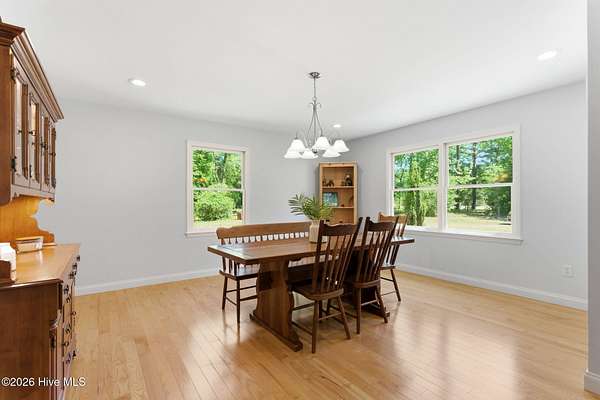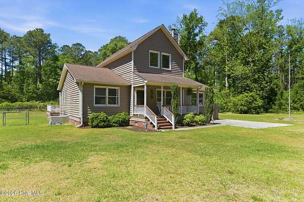 Welcome to this beautifully maintained property in Rocky Point, set on over 4.5 acres in a peaceful country setting. This charming 2-bedroom home offers the perfect blend of comfort, flexibility, and quality craftsmanship--while still being conveniently located just 5 miles from I-40 and directly across from Cape Fear Elementary and Cape Fear Middle Schools. Inside, you'll find solid hardwood flooring both upstairs and downstairs, adding warmth and character throughout. The home features two fully renovated bathrooms with modern finishes, along with a very large pantry room just off the kitchen--ideal for storage and organization. The spacious dining room offers incredible versatility and can easily be used as a playroom, guest space, or home office to fit your lifestyle needs. Step outside to enjoy the large back deck, perfect for relaxing or entertaining while taking in the serene surroundings. Additional features include a detached 24x36 garage complete with workshop space, drywall, and electricity--perfect for hobbies, projects, or extra storage. For added peace of mind, the home is equipped with a Generac whole-home generator. A truly standout feature is the stunning true timber frame barn, built in 2019. This impressive structure is fully heated and air conditioned, offering endless possibilities such as a workshop, studio, event space, or more. With ample acreage, thoughtful updates, and unique features throughout, this property presents a rare opportunity to enjoy space, functionality, and rural charm with convenient access to nearby schools and major highways.