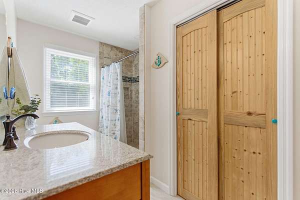 - Blinds/Shades, Ceiling Fan(s), Gas Log, Master Downstairs, Pantry, Vaulted Ceiling(s), Walk-In Shower