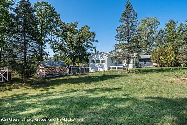 Welcome to Bullhead Lake Drive - Your Private Escape Near Chippewa Lake! Discover the perfect blend of space, nature, and lake living with this charming 3-bedroom, 1-bathroom home nestled on over 28 acres of beautiful land. Located just 500 feet from beach access and a dock on the 790-acre Chippewa Lake, the largest lake in Mecosta County, this property offers endless opportunities for recreation and relaxation. Step inside to find a spacious 3-season room that welcomes you into the home, leading into a large open-concept living and kitchen area, complete with included appliances. The family room boasts tall ceilings and tranquil views of nature, making it the ideal space for entertaining or cozy nights in. Convenience meets comfort on the main floor, which features a primary bedroom, main floor laundry, and direct access to a finished 1-car attached garage. Upstairs, you'll find two additional bedrooms and a flexible office/den/sitting area, perfect for working from home or relaxing. Need storage? The full basement (accessible from outside) offers excellent space for storing all your gear, while the pole barn and three sheds provide even more options for hobbies, tools, or toys. With multiple parcels, there's potential to build an additional home or cabin, a rare opportunity to expand or create your dream retreat. Whether you're looking for a private getaway, a year-round residence, or a place to enjoy Michigan's great outdoors, this one has it all. Don't miss your chance to own a slice of paradise with lake access, schedule your private showing today!
