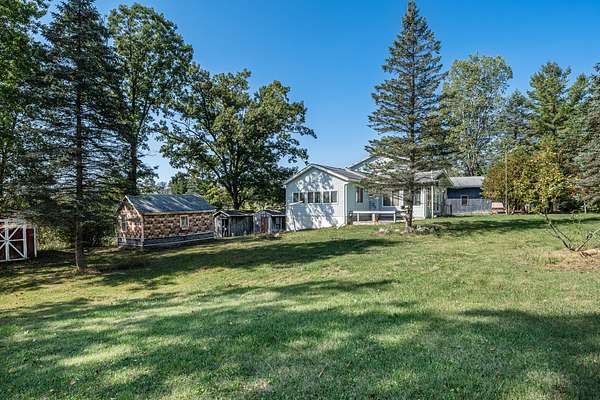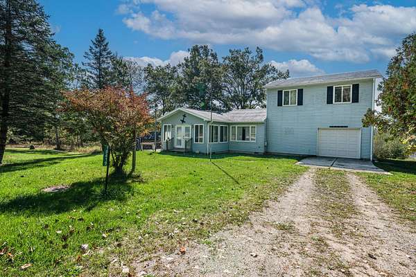 Welcome to Bullhead Lake Drive - Your Private Escape Near Chippewa Lake! Discover the perfect blend of space, nature, and lake living with this charming 3-bedroom, 1-bathroom home nestled on over 28 acres of beautiful land. Located just 500 feet from beach access and a dock on the 790-acre Chippewa Lake, the largest lake in Mecosta County, this property offers endless opportunities for recreation and relaxation. Step inside to find a spacious 3-season room that welcomes you into the home, leading into a large open-concept living and kitchen area, complete with included appliances. The family room boasts tall ceilings and tranquil views of nature, making it the ideal space for entertaining or cozy nights in. Convenience meets comfort on the main floor, which features a primary bedroom, main floor laundry, and direct access to a finished 1-car attached garage. Upstairs, you'll find two additional bedrooms and a flexible office/den/sitting area, perfect for working from home or relaxing. Need storage? The full basement (accessible from outside) offers excellent space for storing all your gear, while the pole barn and three sheds provide even more options for hobbies, tools, or toys. With multiple parcels, there's potential to build an additional home or cabin, a rare opportunity to expand or create your dream retreat. Whether you're looking for a private getaway, a year-round residence, or a place to enjoy Michigan's great outdoors, this one has it all. Don't miss your chance to own a slice of paradise with lake access, schedule your private showing today!
