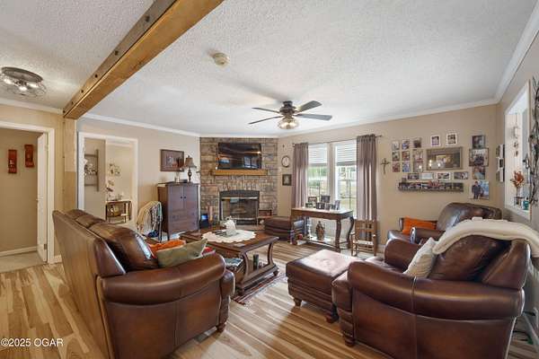 Beautiful and well maintained home on 10 park-like acres with abundance of wildlife and plants and trees! 30 x 40 shop with 2 overhead doors. Detached carport/RV parking. Lovely front and back porches to enjoy the scenary. Large pool with deck. Fully fenced garden area. Adorable chicken coop! Home has welcoming open floorplan with all updated fixtures and flooring throughout. Large island in kitchen. Master features extended sitting area and large walk-in closet. Both a living and family room and formal dining. Must see to truly appreciate!!