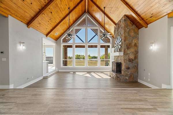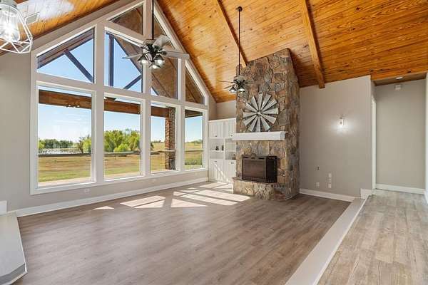 Welcome to a place where every sunrise feels like your own private masterpiece — a 3,494 sq ft ranch home where modern comfort meets the timeless beauty of country living. Set on just over 31 peaceful acres in Ennis, this property captures the essence of rural tranquility while keeping you within easy reach of Dallas — less than an hour away. Here, you can enjoy the quiet rhythm of small-town life with charming local shops and community traditions, all without sacrificing access to city conveniences. As you drive through the gated entrance, the landscape opens up to the pastures, a sparkling stock pond, and wide-open skies that stretch endlessly above. The home itself was designed for both relaxation and gathering — cathedral ceilings and expansive windows flood the living spaces with natural light and frame breathtaking views of your property. Whether you’re sipping morning coffee by the window or watching the sunset dance across the pond, every moment feels like a quiet escape. The primary suite offers a serene retreat with views of the water, a spa-style bath with soaking tub, separate shower, and a walk-in closet. With 4 bedrooms, 4 full baths, and an office that easily converts to a fifth bedroom or formal dining room, there’s space for everyone to unwind. Upstairs, a private game room with its own ensuite bed and bath makes the perfect guest hideaway. Outside, discover a ranch ready for whatever dreams you bring — a barn equipped with electricity, water, and ethernet (solar-ready), a two-bay shed, a storm shelter, and a variety of fruit trees ready for harvest. The entire property is fully fenced, ideal for livestock or simply enjoying the freedom of open space. With no city taxes and the peaceful charm all around you, this home is more than just a place to live — it’s a lifestyle, a retreat, and an opportunity to savor the best of Texas living.