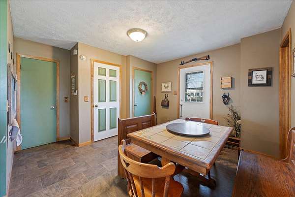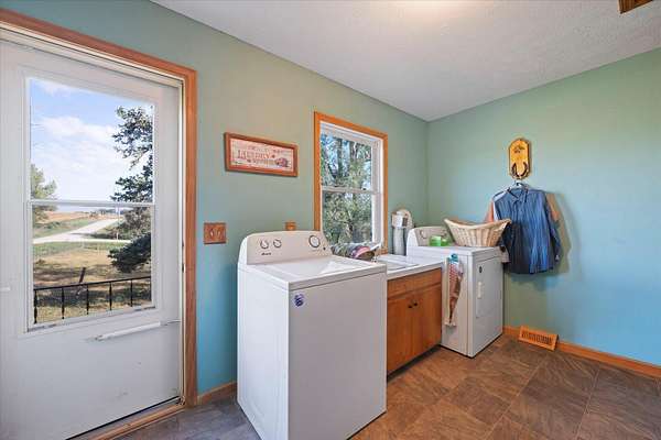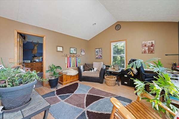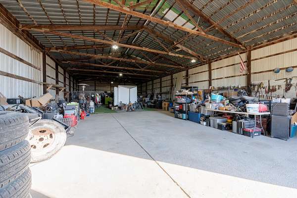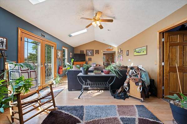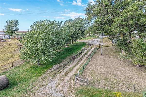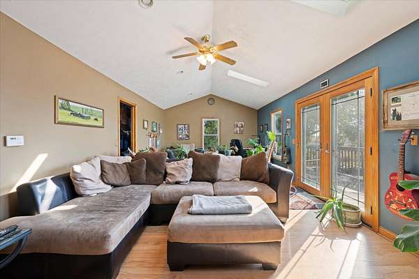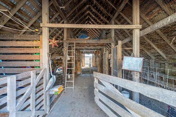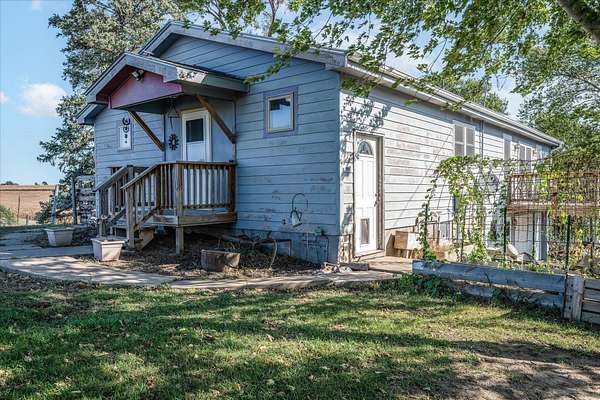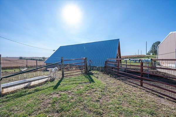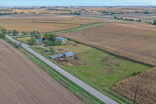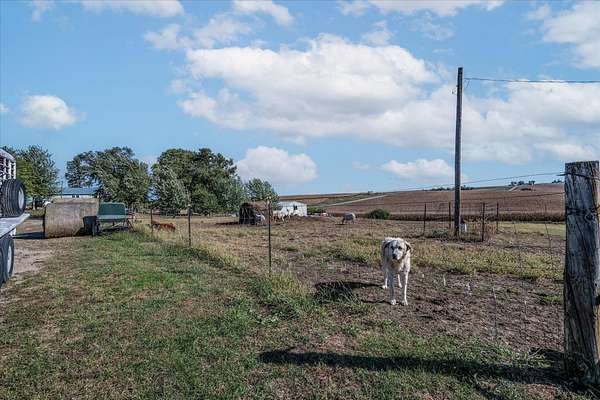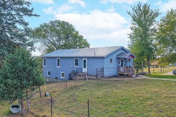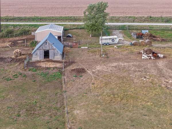 Discover peaceful country life, while only being a mile to town! This farmstead is perfectly set up for your livestock needs, the 6+ acres is fully fenced in,with several lots and cross fencing to rotate pastures. Multiple outbuildings for shelter and a 38x88 machine shed for all your equipment. While the solar panels on the roof supply power to the farm, and the peace of mind not having a power bill as prices keep rising. The home offers complete main floor living with 2 bedrooms, Eat-In Kitchen with pantry, spacious living room featuring vaulted ceilings, and patio door out to a deck that over looks the farm, main floor laundry, and full bath. The basement just needs finishing touches to complete the family and 3rd bedroom, with a walk-out to the 2 car garage that could be finished!