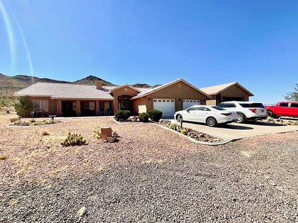 Situated at 1944 E Fortuna CT in Kingman, Arizona, USA, this single-family residence presents an attractive property maintained in great condition. The expansive living room serves as a central gathering space, distinguished by its impressive high vaulted ceiling, creating an airy and grand ambiance; a charming fireplace provides a focal point for comfort and relaxation. Culinary aspirations are well-supported within the kitchen, featuring a practical backsplash for both style and ease of maintenance, along with a functional kitchen peninsula and a convenient kitchen bar, perfect for preparing meals or enjoying casual dining. The dedicated bathroom offers a refined experience with its elegant double vanity, providing ample space for personal routines, alongside a luxurious tiled walk in shower that evokes a spa-like tranquility. This single-family residence encompasses a generous 2152 square feet of living area, thoughtfully arranged with an open floor plan that fosters a spacious atmosphere, and includes three serene bedrooms designed for peaceful repose. Beyond the interiors, a welcoming sunroom invites tranquil moments, while a comfortable porch extends opportunities for outdoor enjoyment, all beneath the enduring protection of a tiled roof; practicality is further addressed with a designated laundry room, streamlining daily tasks. The property is ideally situated within a serene rural area, providing a peaceful environment complemented by captivating mountain view vistas that inspire a connection with the natural surroundings. The double garage is approx. 23 X 27. The single garage is approx. 29 X 24. Garages are insulated and offer plenty of outlets for all your projects. The inside and outside of the home and the garages were freshly painted in 2025 with a kitchen remodel in 2021 This property embodies a distinguished living experience, thoughtfully designed for comfort and serene enjoyment. Want a pool or just need an extra house? This seller also own and is selling 1966 Fortuna Ct which sits just a few yards away on it's own 6+ acre parcel. This makes a great Rec house/Granny Pad/Pool Home/Rental/Lots of possibilities. Although Seller has then listed separately, they can be combined for a single sale.
