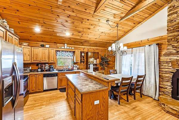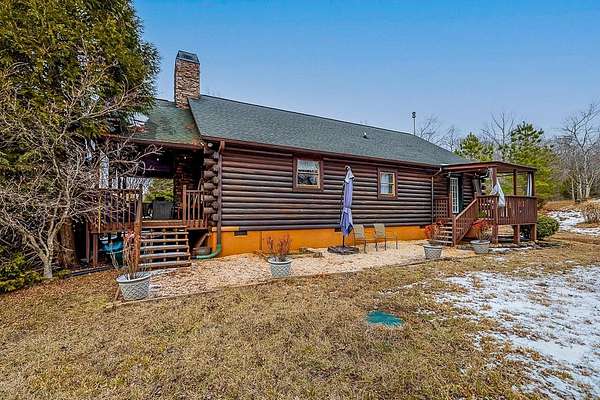 Tucked into a peaceful Rutherfordton setting, 1944 River Crest Parkway presents a beautifully crafted log cabin that blends rustic character with refined comfort. This three-bedroom, two-bath residence welcomes you with a classic wraparound front porch--an ideal spot for morning coffee or evening sunsets--accentuated by warm, thoughtful lighting that enhances the home's inviting presence. Inside, the cabin exudes a cozy, relaxed atmosphere with natural wood textures and a thoughtfully designed layout for easy living, anchored by a gas log fireplace in the living area that creates a warm and inviting focal point. The home sits on a generous two-acre lot, providing space to breathe, roam, and create your own outdoor retreat. A circular driveway adds both convenience and curb appeal, while an outbuilding with electricity expands possibilities for storage, hobbies, or a workshop. There are two water heaters and Spectrum is currently being installed for the subdivision. With its serene surroundings, distinctive log construction, and balance of comfort and function, this home captures the essence of country living while remaining perfectly positioned for everyday enjoyment.