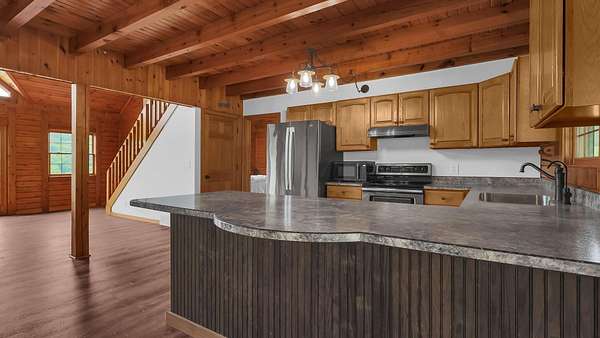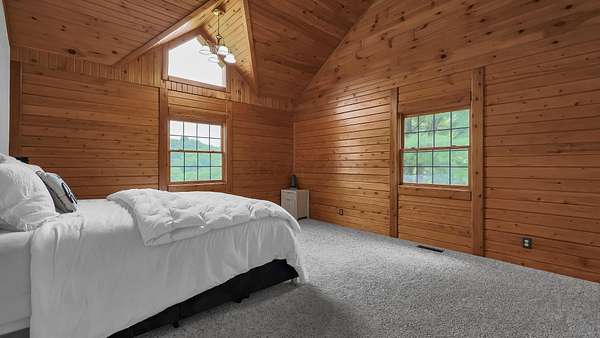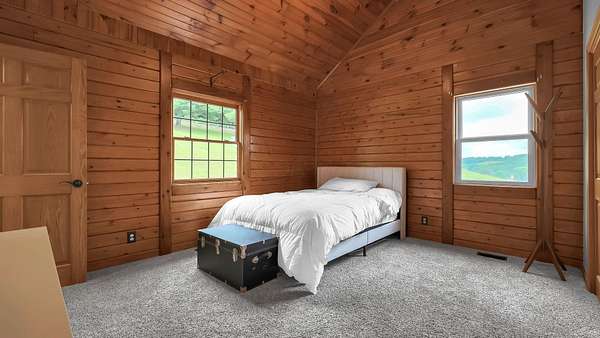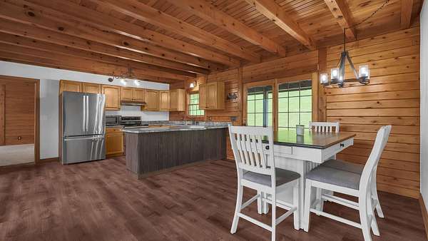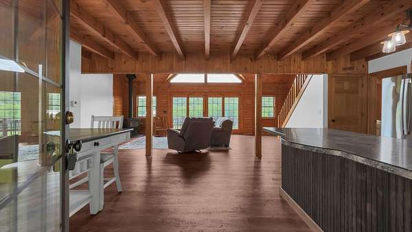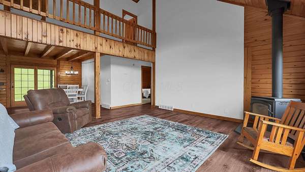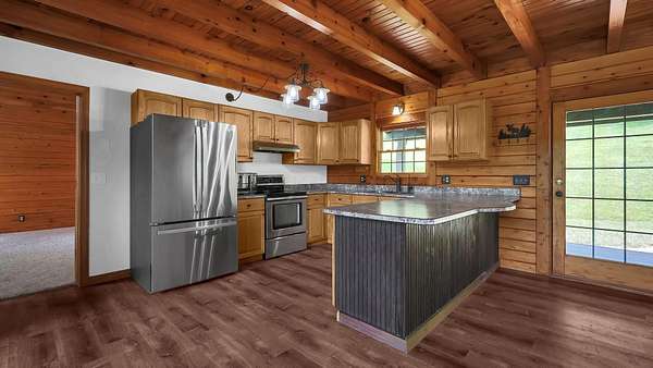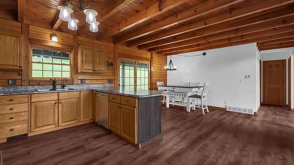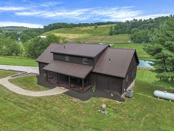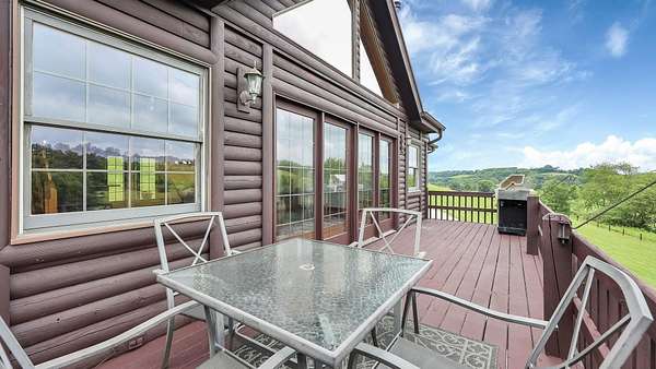 This beautifully updated home features five bedrooms, three full bathrooms, and sits on a generous 2.75 acre lot. Two master suites, with an additional three bedrooms and full bath. New electric heat pump with propane backup, new tankless hot water tank, new mini split units for climate control to basement and garage. Perfect for those seeking space and serenity. The true wood logs add rustic charm, while the new life proof flooring throughout the main level offers both style and durability. Enjoy breathtaking views from the back balcony, where the peaceful countryside stretches as far as the eye can see. This home offers the perfect blend of modern comfort and country living. A rare opportunity you don't want to miss!