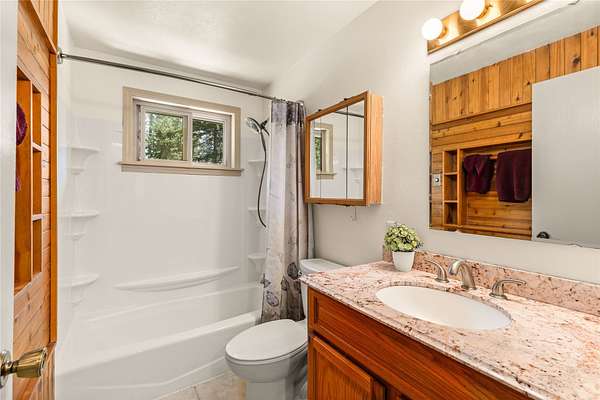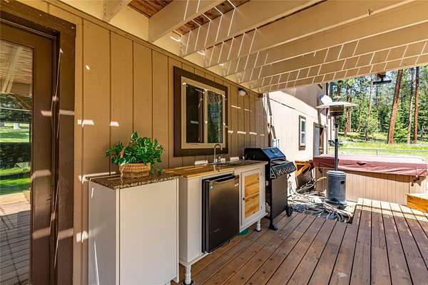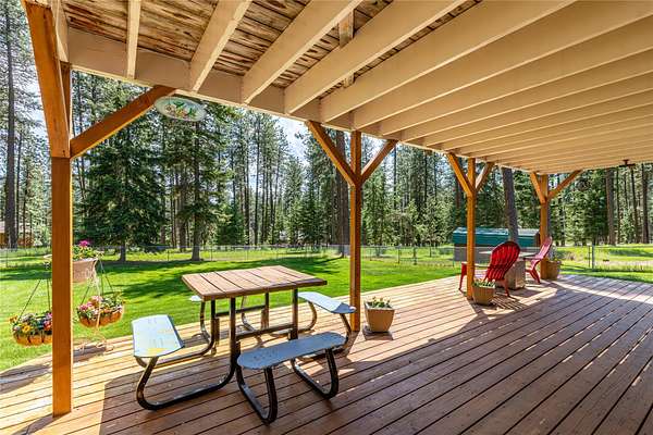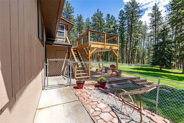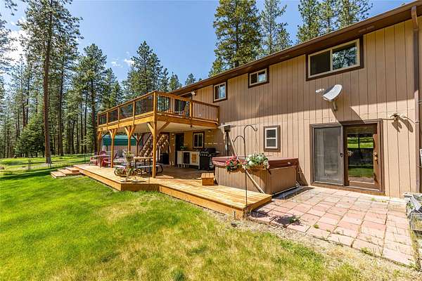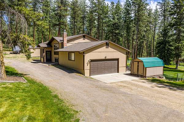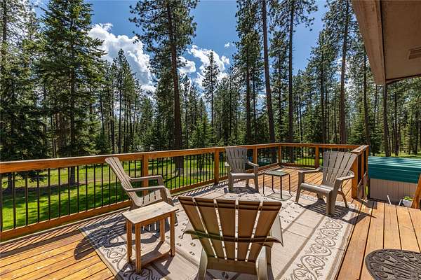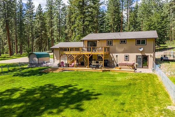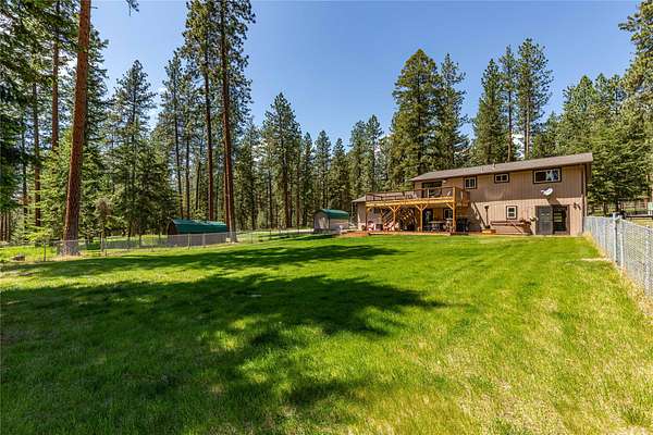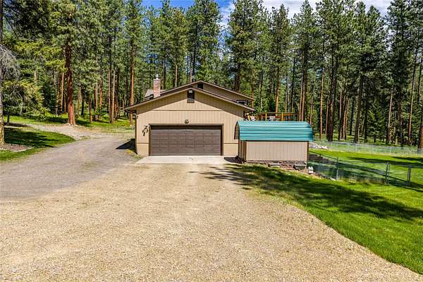 Tucked in the Sorrel Springs neighborhood of Frenchtown, this 3-bedroom, 3-bath home sits on 4.2 private, wooded acres at the end of a quiet cul-de-sac. The property features meticulously maintained grounds, a fully fenced backyard, and an expansive covered deck with peaceful wooded views and a hot tub offering space and privacy to enjoy Montana's outdoors in any season. Inside, the main level includes an updated kitchen with newer appliances and a propane stove that creates a cozy dining space. Also on the main level is the Living Room, half bath, and direct access to the large deck, Upstairs, the primary suite includes a private bathroom and its own deck overlooking the trees. Two additional bedrooms and a full bath complete the upper level. Outside, you will find extra parking, an RV pad with electrical hookup, and an extra shed for added storage. Located in the Frenchtown School District, this home offers a peaceful setting just 20 minutes from Missoula, perfect for living the Montana lifestyle with room to breathe.