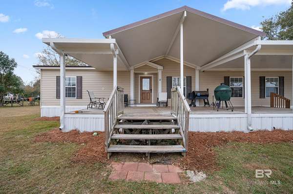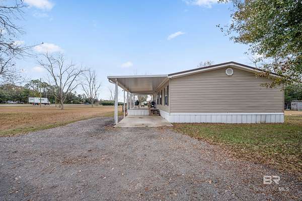 Well-maintained 3-bedroom, 2-bath manufactured home situated on over 2.5 acres along Baldwin Beach Express in Summerdale. The home features a functional layout with comfortable living spaces and a covered front porch, providing a welcoming outdoor area to enjoy the surrounding property. A metal roof was installed in 2015. Multiple outbuildings are located on the property, including a workshop, offering excellent space for storage, hobbies, or equipment. The property is equipped with two septic tanks and an RV hookup, allowing flexibility for future expansion or additional improvements. With ample open space, the land provides numerous opportunities to customize, expand, or create a personalized outdoor setup. Conveniently located with easy access to surrounding areas, this property offers a combination of space, utility, and versatility. Buyer to verify all information during due diligence.