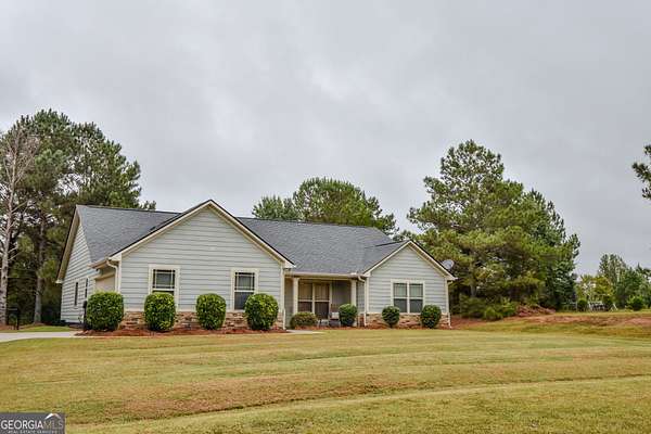 Welcome home to this stunning 4-bedroom, 2-bath ranch nestled on over 3 private acres in desirable Pike County. This beautifully maintained property offers the perfect blend of modern comfort and rustic charm. Step inside to find luxury vinyl plank flooring, a vaulted ceiling with a rustic wood beam, and a cozy wood-burning stone fireplace that anchors the spacious living area. The kitchen features stainless steel appliances, granite countertops, and plenty of storage-perfect for everyday living or entertaining. Enjoy a true split-bedroom floor plan, with a relaxing owner's suite offering dual vanities, a soaking tub, a separate shower, and walk-in closet. The shiplap-accented laundry/mudroom adds style and function to your daily routine. Outside, you'll love the private, fenced-in backyard, ideal for kids, pets, and outdoor gatherings. The covered back porch is perfect for entertaining-complete with space for your TV, grill, and outdoor dining setup. A two-car garage and peaceful country setting complete this beautiful property. Enjoy the quiet of country living while being just minutes from schools, shopping, and all that Pike County has to offer. This home truly has it all-modern style, privacy, and a prime location. Don't miss your chance to make it yours!