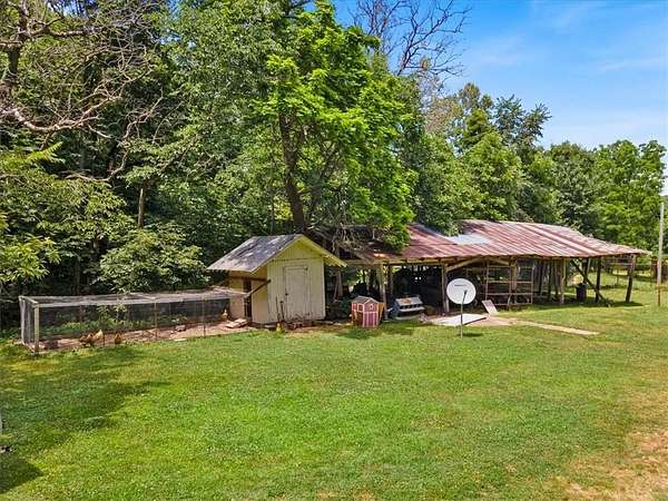 Tucked away on a private lane, this beautifully secluded property offers breathtaking views. The land features an ideal blend of open pasture--perfect for livestock, gardening, or future homesites--and mature wooded acreage providing excellent hunting and recreational opportunities. A rustic hunting cabin is already in place, along with multiple outbuildings and a storm shelter. The impressive 60x40 barn includes electricity and offers ample space for equipment, storage, hobbies, or livestock needs. Utilities are a major bonus with electric and water available on the property, plus an RV hookup conveniently located next to a deck--ideal for weekend stays or temporary living.