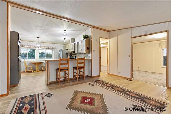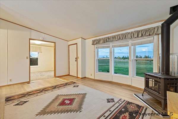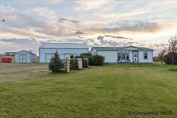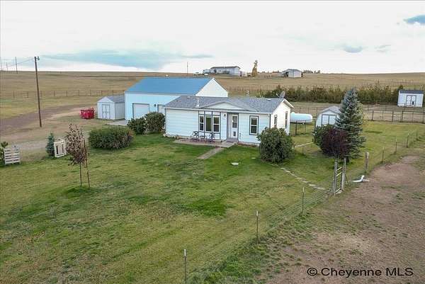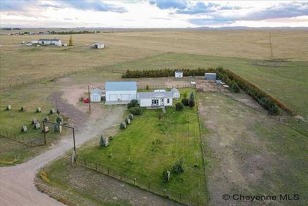 Beautiful north location on nine fully fenced acres with mature landscaping and trees. This well-maintained three-bedroom, two-bath home offers comfortable living with pride of ownership throughout. The property features a large outbuilding, horse facilities, and an RV hookup with sewer clean-out, making it ideal for country living with modern convenience. Enjoy plenty of room for animals, hobbies, or extra storage, all in a peaceful setting with wide-open views.