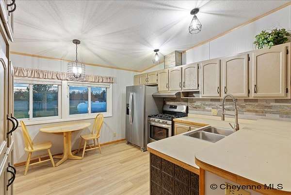 - Eat in Kitchen, Main Floor Laundry, Main Floor Primary, Thermal Windows, Vaulted Ceiling