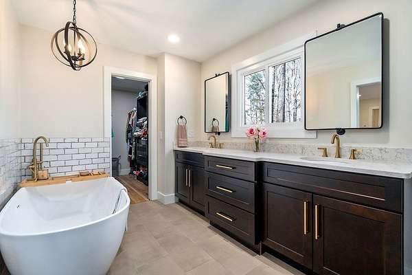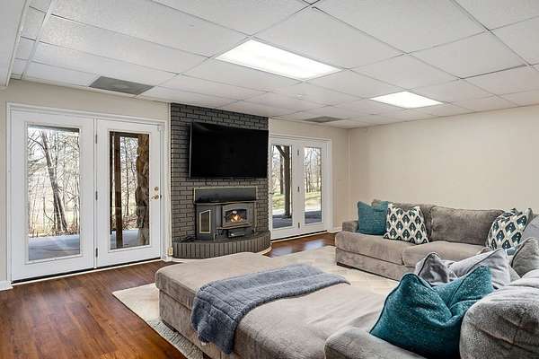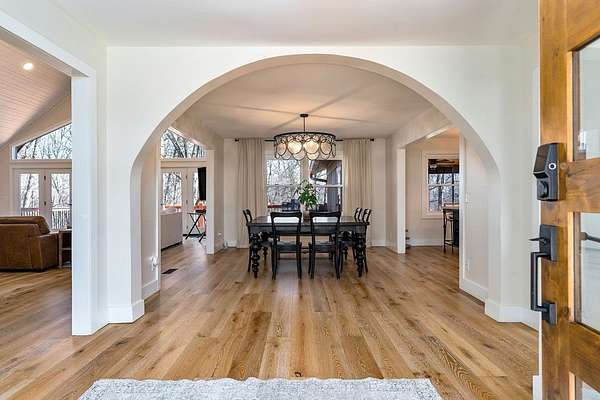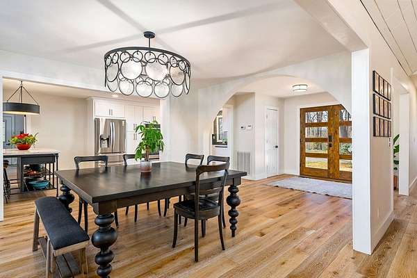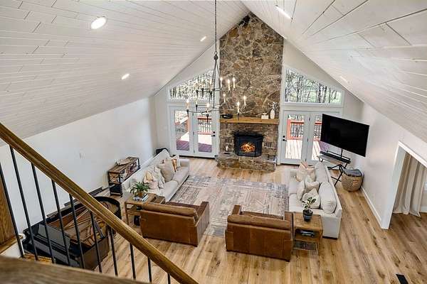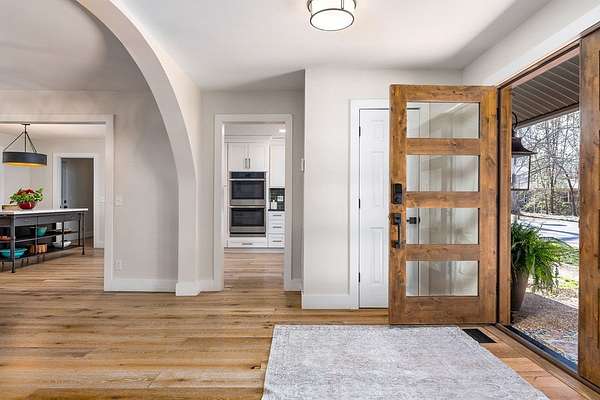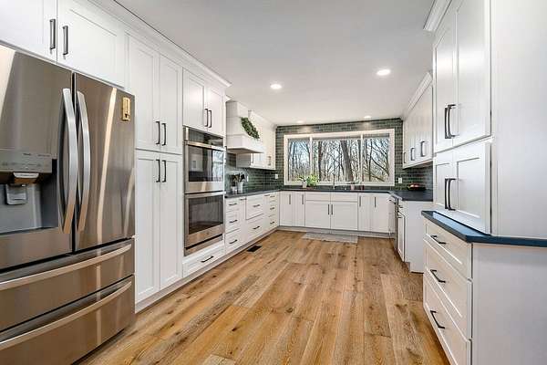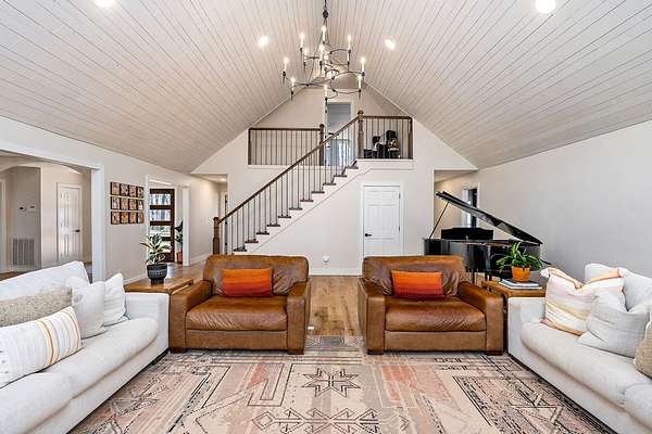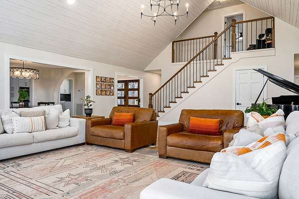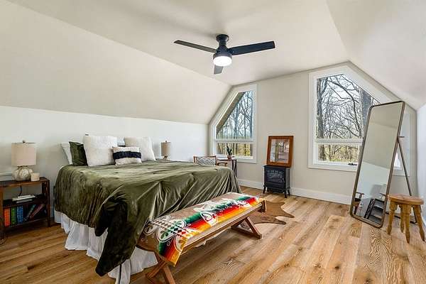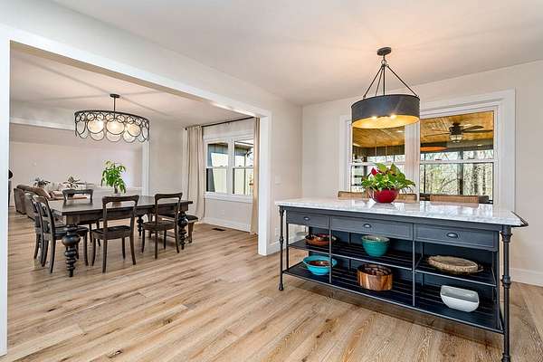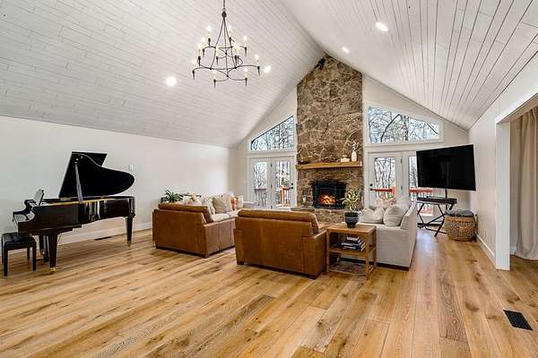 Experience refined country living in this fully renovated 4,500 sq. ft. estate set on 3.5 private acres. Surrounded by mature trees, the property offers exceptional privacy and a serene setting. The exterior showcases elegant fieldstone accents, creating a timeless first impression. Inside, the open-concept design is filled with natural light and high-end finishes throughout. A striking fieldstone fireplace anchors the great room, while the kitchen and spacious living areas feature expansive views of the surrounding landscape. The primary suite provides a luxurious, spa-like retreat. Additional highlights include a main-level two-car garage and a basement garage/workshop, ideal for storage, hobbies, or a mini-farm lifestyle. This property seamlessly blends modern comfort with the beauty of country living, just minutes to town. It isn't just a house; it's a deep breath.