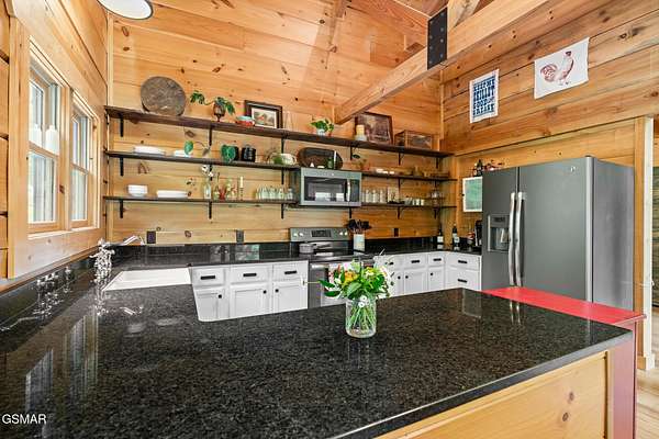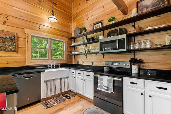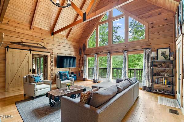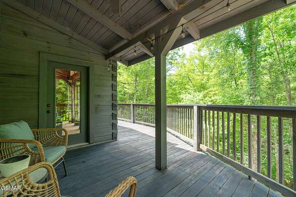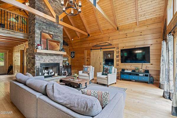 Come check out this custom built true log cabin that is situated on over 10 private acres of land that backs up to the Foothills Parkway of the Great Smoky Mountains National Park. This home is being offered for the first time since its completion in 2016. This residence was handcrafted with attention to detail. As you walk into the double door entry you are greeted with hickory floors, an extra wide foyer leading to the spacious living room with wall to wall windows, a wood burning fireplace and cathedral ceilings. For ease and convenience the main bedroom, guest bedroom, bathroom and laundry room are all on the main level. The large open loft sits upstairs and overlooks the living area. This space could be used as an office, a second guest room, or a play area for the family, the choice is yours. The wide outdoor deck off of the living room is a great space for entertaining or relaxing. The kitchen dining area features ample storage, custom shelving and counter seating. The main bedroom has an ensuite bathroom with dual sinks, a claw foot tub for soaking, a separate shower and a large walk-in closet. This room also features its own private, covered deck facing the woods. Downstairs you will find an additional 1600 square feet of ready to finish storage space, a workshop area and the two car garage. All mechanical systems, roof and appliances are original to the home. The location of this home offers privacy away from the hustle and bustle, however you are just about 15 minutes to Townsend (the quiet side of the Smokies), 20 minutes to Maryville for eateries and shopping, and just 25 minutes to the National Park entrance. So, if you are looking for a well maintained, private mountain cabin, in a gated community that backs up to nature, then look no further. Call for a showing today.