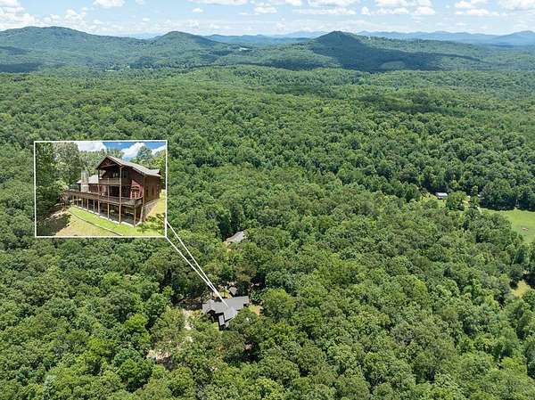 Unique property in Fannin County with 59+ unrestricted acres of land. Like "OFF THE GRID, BUT NOT".Joins Stuart Highlands Subdivision just off Wolf Creek Rd. Beautiful 3978 sq. ft. home and nice 2/1 cabin. All gorgeous usable land with several creeks & springs, 2 working wells, available county water, several outbuildings, green house, pole barn, very very private. Large home is 4 bdrm, 3.5 baths, gourmet kitchen with custom alderwood soft close cabinetry, huge loft room currently used as office, endless huge closets, pantry, big laundry room, full basement with great room, bdrm, full bath, workshop and much more. Many covered porches, one large screened porch off living room. Roomy 2 car garage with EV hook-up, poured bsmt. walls, foam insulation thru out house, bamboo floors, 2 wood burning fireplaces, one on main and one in bsmt, also has exterior wood burning furnace, very efficient heating source, 2 heat pumps, RV pad set up with water/power, blueberry orchard. Cabin is 500 sq. ft., gas wall heat, wood burning stove, storage shed and much more. Perfect for private retreat but is unrestricted so the sky is the limit! This property can also be purchased without the cabin and 13 acres for $1,500,000.