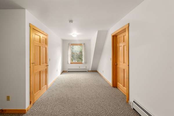 Contemporary cape offering spacious rooms and two bonus/storage/hobby rooms. Natural woodwork with 8' 3" ceilings plus exposed beams in the living areas on the main level, check out the yard on all sides via the large windows in each room. Six panel solid wood doors are in place throughout this home. Large bedroom on main level with walk-in closet. Expansive upstairs left bedroom offers two closets plus one of the bonus rooms. Future family/office or hobby room is off the third bedroom. Granite hearth is in the westerly end of the living room. 3/4 bath on main level has laundry hookups, handicapped toilet and shower. No need for slippers as the radiant heat on main level warms your feet and includes the garage on a separate thermostat; baseboard heat is upstairs. Updated paint adds to the clean interior. New closet (7'10"x 7'8") enclosing the fuel oil tank and electric panel box has just been completed. Stone patio and wrap around stone wall are flanked with peonies, day lilies & more plus westerly mountain views. Back yard includes Elmore Mt. views, a large lawn area-future garden space! plus small brook tucked into the woods. Copley Hospital, Copley Country Club, public library, shopping, restaurants, the Lamoille Rail Trail, and numerous craft beer locations are minutes away in the village. All Saints Elementary School Academy is just off State Route 100 South. Stowe village is 20 minutes to the south. Interstate 89 is 19 miles south on Rt. 100. Owners are Vt. licensed real estate agents.